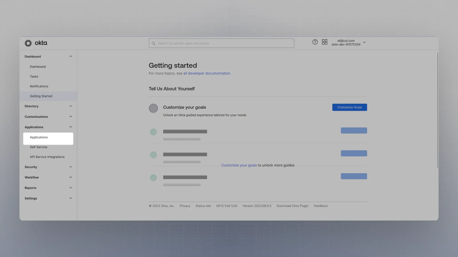 Create an application with your OIDC provider. For example, in Okta, once you create an account, you can click on Applications on the sidebar menu: