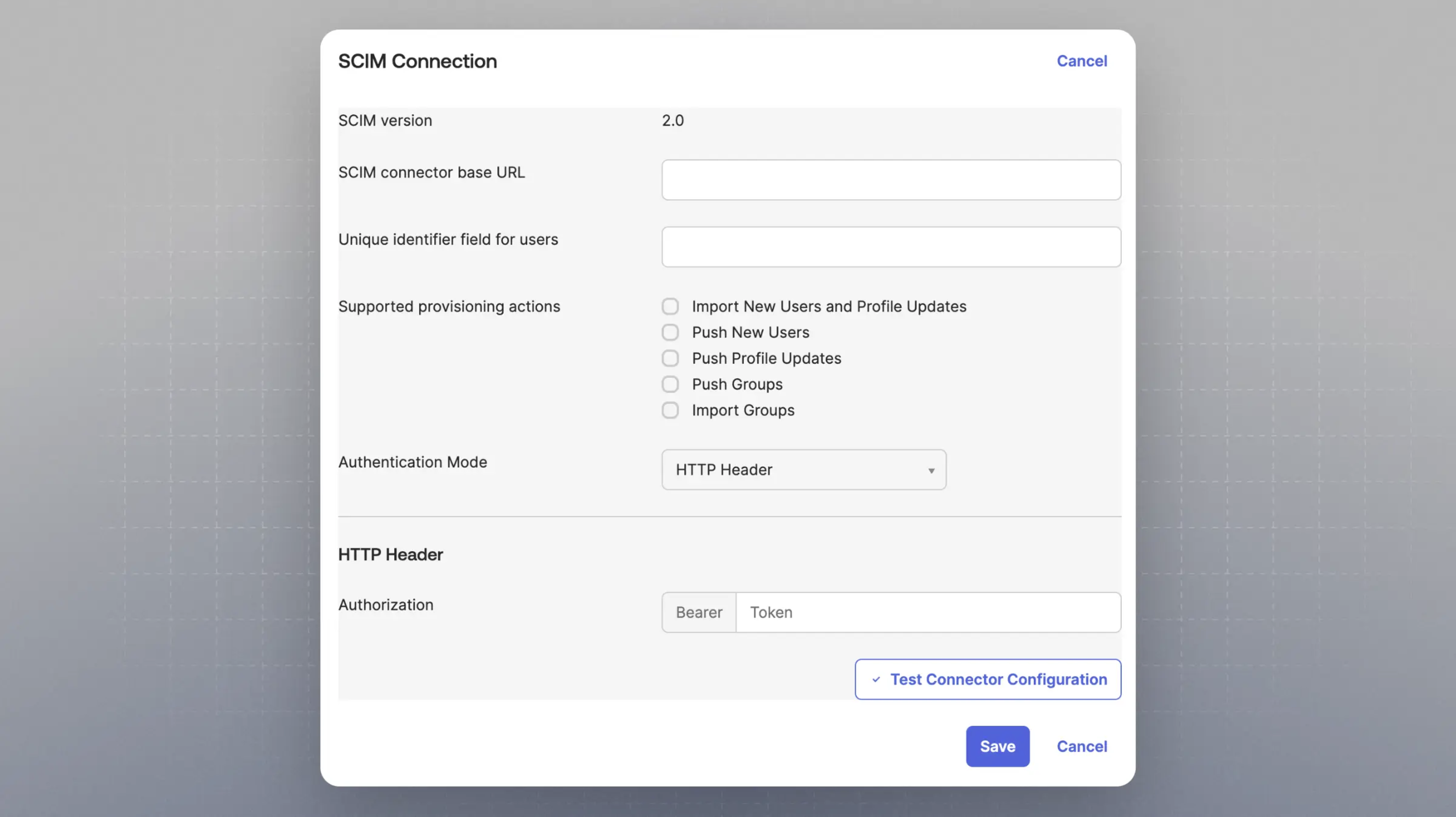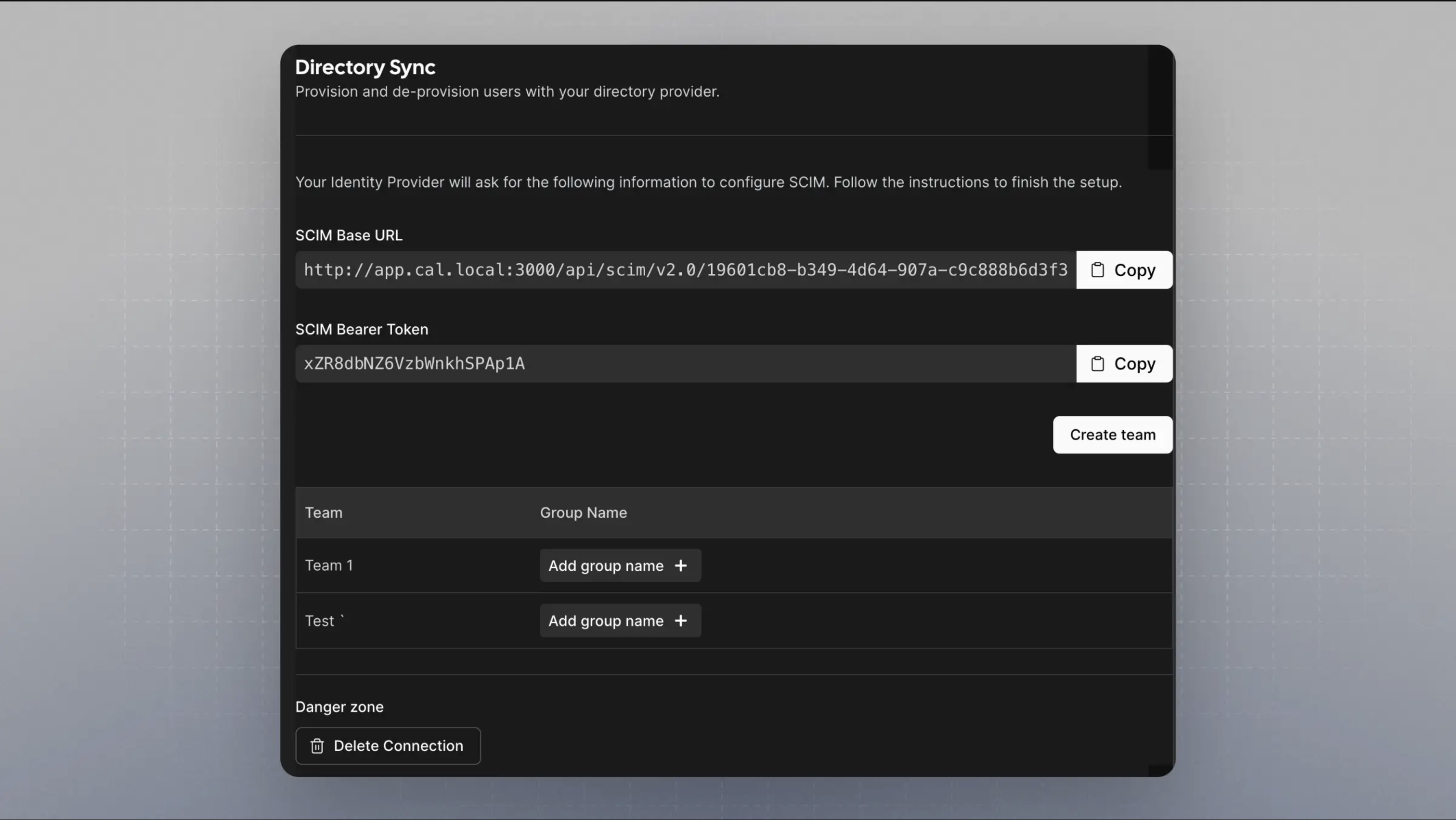 Take note of the “SCIM Base URL” and “SCIM Bearer Token”